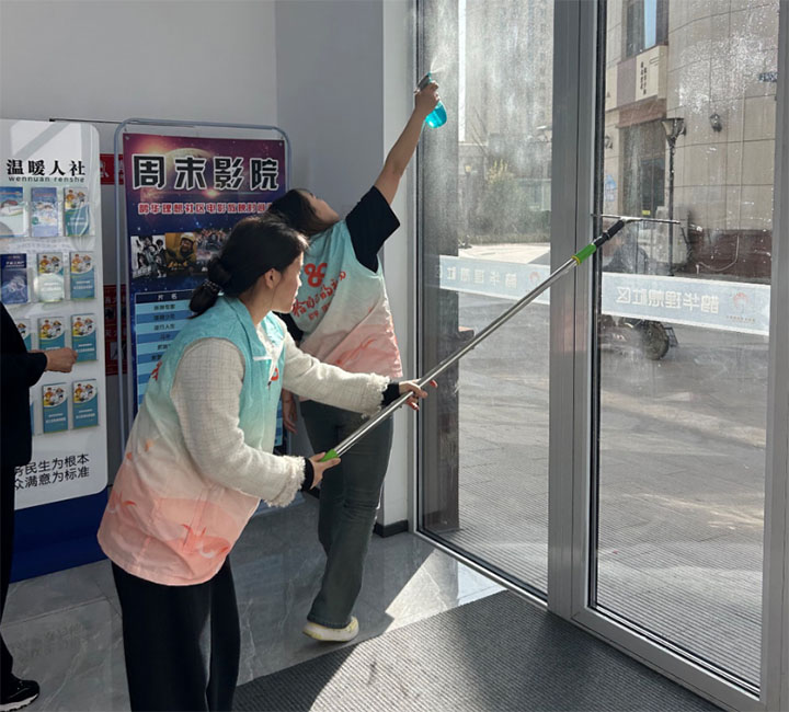图为实践团成员擦拭门窗