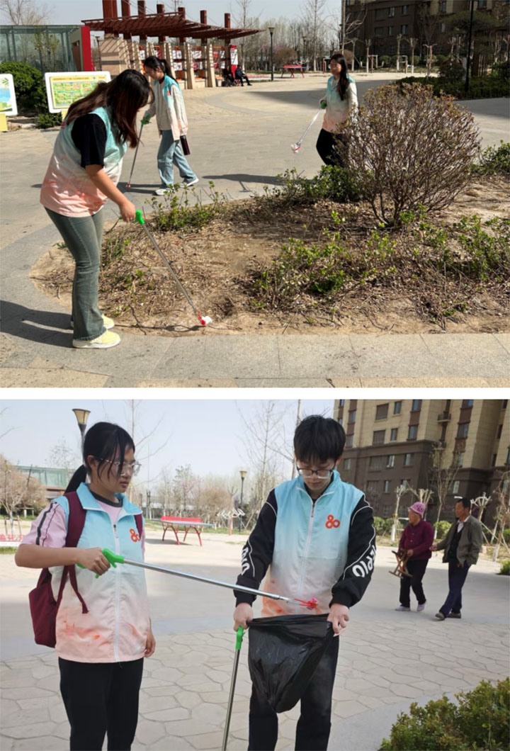 抵达鹊华九里居后,同学们手持扫帚穿梭于巷道楼宇间,清扫路面垃圾、拾捡草地杂物,擦拭锈迹扶手。这不仅是对环境的清洁,更是以实际行动践行社会责任,用双手为社区勾勒出整洁有序的崭新面貌。