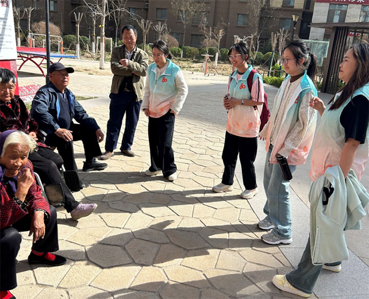 图为实践团成员和老人的聊天