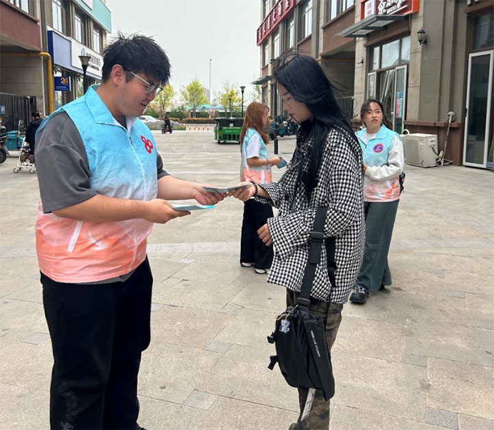 随后,实践团成员们来到鹊华理想社区,积极展开“一盔一带”宣传活动。成员们向社区人员详细讲解佩戴头盔和系安全带的重要意义,并通过展示真实的事故案例,让社区居民更直观地认识到安全防护措施的重要性。为了让居民更好地掌握正确佩戴头盔的方法,同学们还在现场进行了示范,耐心解答居民提出的疑问。随后,在交警的带领下,学子们走上街头,协助交警进行交通疏导。他们身着志愿者服装,手持引导旗,认真地引导行人过马路,对闯红灯、不走斑马线等不文明行为进行耐心劝导。尽管烈日炎炎,但学子们始终坚守岗位,以饱满的热情投入到志愿服务中。