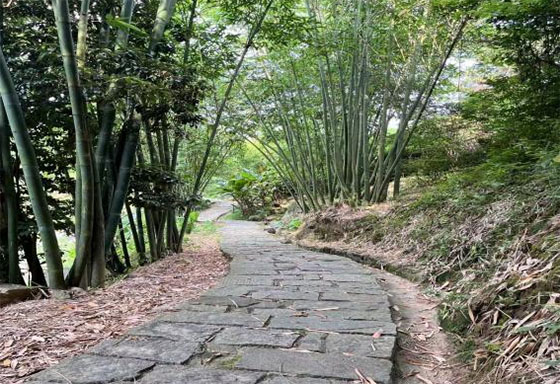 漫步其间,古道被葱郁的绿意环抱。藤蔓与古树缱绻,野花在草甸间恣意绽放,泥土与草木的清香沁人心脾。阳光滤过叶隙,在青石板上洒下流动的光斑,每一步都仿佛叩响历史,又似投入自然的温软怀抱。