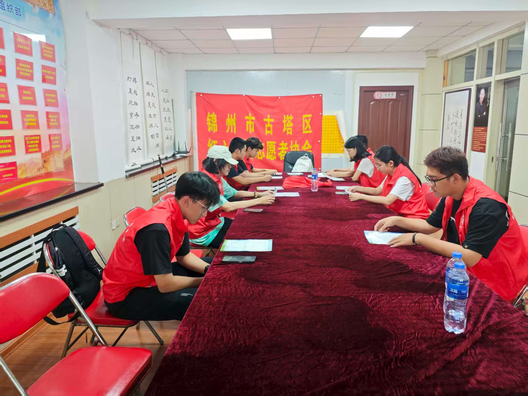 图为实践队成员阅读城管职责。 曹一诺供图