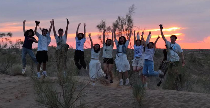 7月9日的新疆傍晚,有着独属于支教老师们的浪漫。课后,大家满怀期待地奔赴那处提前探测好的观看日落的胜地。