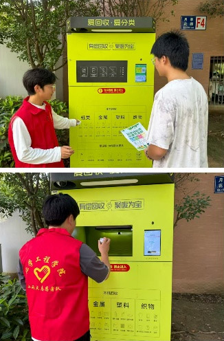 团队深入淮安等地社区,聚焦智能垃圾箱的推广使用。成员们化身“科普讲解员”,通过现场演示、手把手教学的方式,向居民讲解智能垃圾箱的分类投放流程、积分兑换规则等实用知识,耐心解答“不同垃圾如何精准投放”“误投后如何修正”等问题,帮助老年居民等群体打破智能设备使用壁垒。同时,在社区公告栏、单元门口等显眼位置张贴色彩鲜明的垃圾分类宣传海报,以图文结合的形式清晰标注可回收物、厨余垃圾等分类标准,让分类知识“抬头可见”。