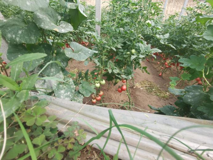 随后,在当地农户口中实践团了解到,当地大棚种植会在作物收获后进行秸秆还田,或通过种植玉米,粉碎秸秆来维持土壤,在政府的带动下,大多数农户都使用秸秆粉碎还田机,不仅有利于增加土壤肥力,进一步创收,也弥补了大棚在修养期的空白。众多农户采用这种方法实现了蔬菜的产量增加,发展起绿色循环农业。之后实践团成员在当地农户的带领下近距离观察大棚,了解大棚种植方法,并调研西红柿的生长环境。