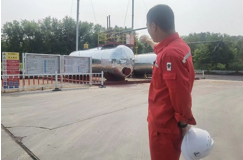 图为六户管理区工作人员为实践团讲解储油罐 中国青年网通讯员 李明泽 摄