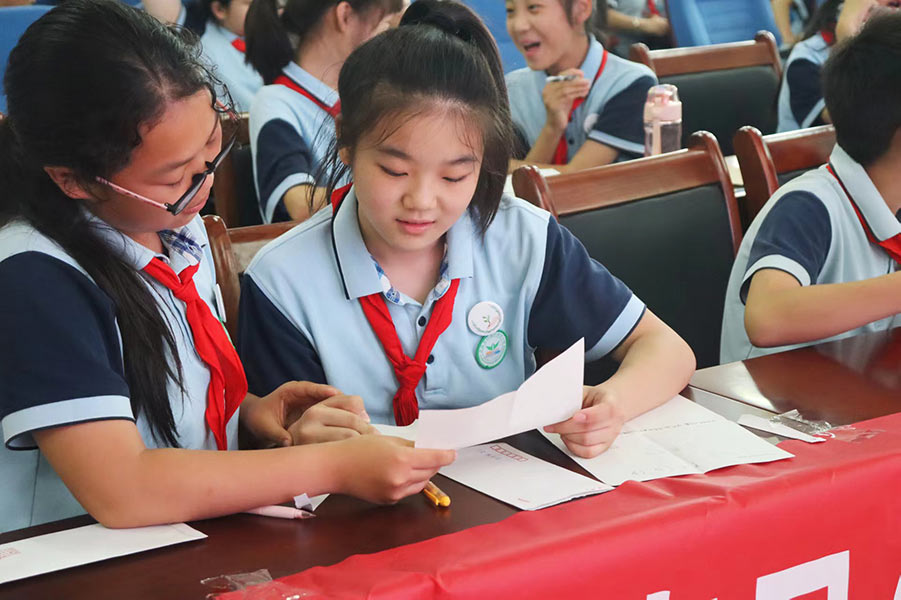 了解过南北文化的特色后,孩子们都迫不及待地想认识一下与自己相隔半个中国的朋友们。团队成员在两所学校之间开设“纸飞机信箱”,为孩子们分发信纸,让两地的孩子互相写信,通过书信交流加深对彼此文化的理解。“纸飞机信箱”得到了孩子们的热烈响应。厦门市逸夫小学的孩子们首先为北方的孩子写信,他们在信中写下成长的烦恼、家乡的特色以及自己对彼此文化想要深入了解之处,随后,团队成员通过笔名匹配等方式,将信件寄到济南市神武小学,一对一地分发到北方孩子的手里,而北方孩子也郑重、真诚地给南方孩子回信,遥隔两地的祝福,就在半个中国的距离和孩子们稚嫩的笔触中绵绵传递。