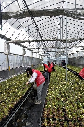 他们带领小组成员熟悉种植石斛的环境,边走边介绍每一部分是相对应石斛制造的哪些工艺,并向其演示如何采摘石斛和相关的注意事项,小组便开始了体验如何采摘。