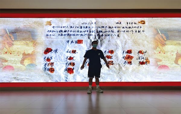 当我看到大包干纪念馆里展出的那份放大版契约时,寥寥数语,却震撼人心。契约上:“我们分田到户,每户户主签字盖章,如以后能干,每户保证每户的全年上交和公粮不再向国家伸手要钱要粮。如不成,我们干部坐牢杀头也甘心,大家社员也保证把我们的小孩养活到十八岁”。在书本上的“大包干”第一次展现在我们面前,历史不再仅仅是停留在书本上的一行行文字和一张张图片,这些都被我们真真切切地感受到。