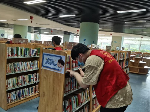 一如既往,我们如约来到图书馆,在了解了自己的工作之后,便来到工作岗位上恪尽职守,没有丝毫松懈,图书馆里人们来来往往,在这快速发展的时代,也有许多人暂时放下了肩上的担子,慢慢融入了这个只有自己的世界,慢慢的享受着读书带来的快乐和松懈,当他们轻轻合上书本的时候,依旧恋恋不舍的回味着刚刚短暂的时光,然后将书本摆放在读书桌上,轻轻的迈着脚步离开读书室,这时我们志愿者将书本摆回书架。其他志愿者则整理分类书架。这是我们重复做的事情,但是我们没有懊恼,没有抱怨。高尔基曾说过书籍是人类进步的阶梯,孩子们来借书时自然会有不懂的地方,我们也会主动帮助孩子们寻找需要的书籍,他们可爱的面容,礼貌的举止,是我们最大的动力。在此次我活动中,大家都有很强的责任心,动作快捷,激情高昂,不偷懒不松懈,都完成了分配给自己的任务,将所属自己的书架整理的井然有序,充分展示了志愿者应有的勤奋认真、吃苦耐劳的精神风貌。同时,我们都注意自己的言行,交流时尽量小声,整理图书的时候,轻拿轻放,尽量不发出声响,以免打扰到孩子们读书。