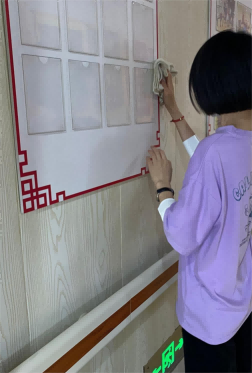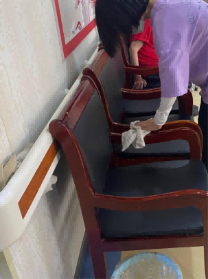 打扫卫生,尽心尽力老人房间的卫生清洁,护理员工们基本上都已打扫干净,收拾妥当。经过护理员工的指导,队员们用抹布擦拭大厅和走道的物品,为敬老院的老人提供力所能及的帮助与服务。