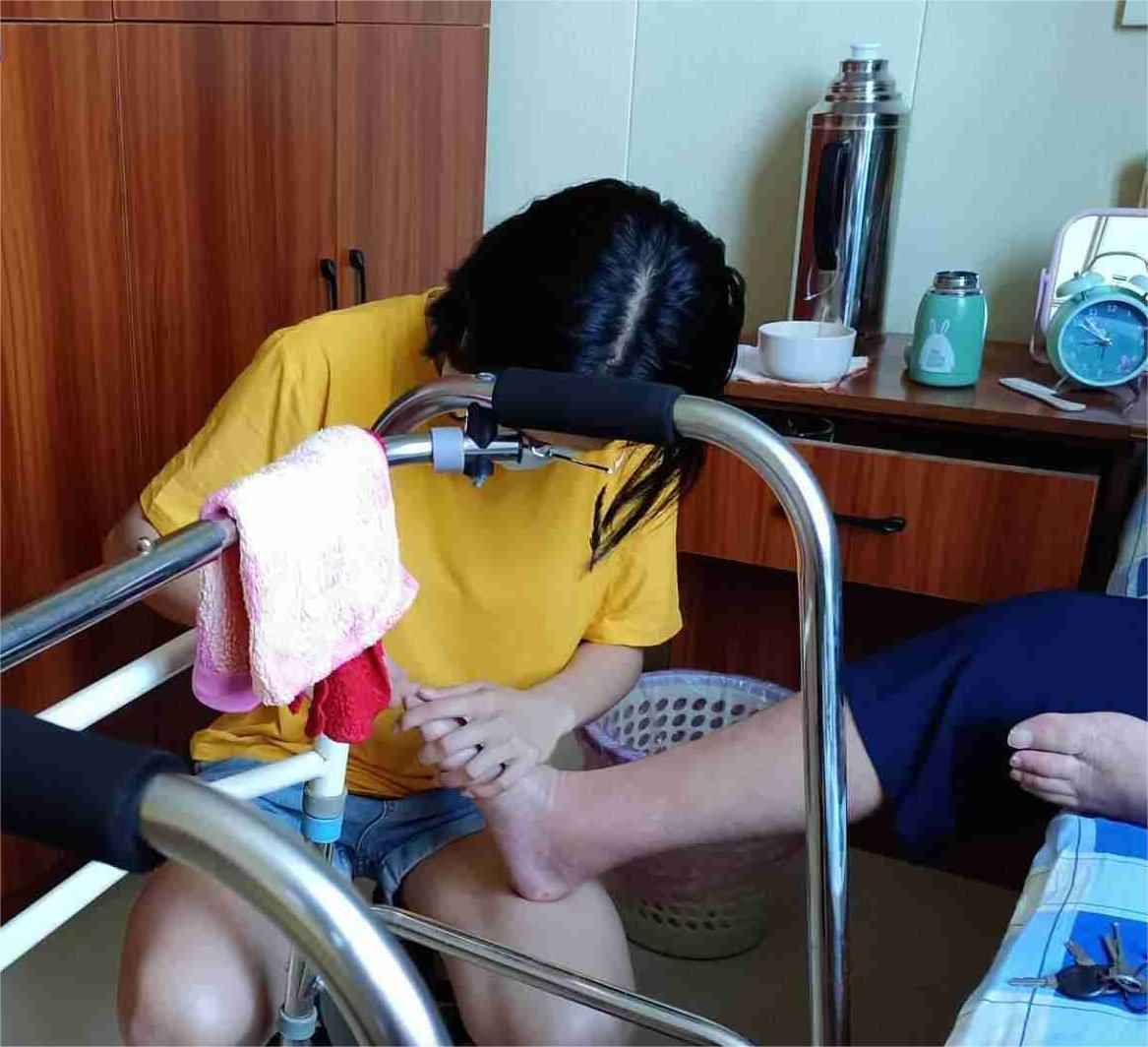 图为队员在为其中一位老人修剪脚趾甲 罗子晴 供图