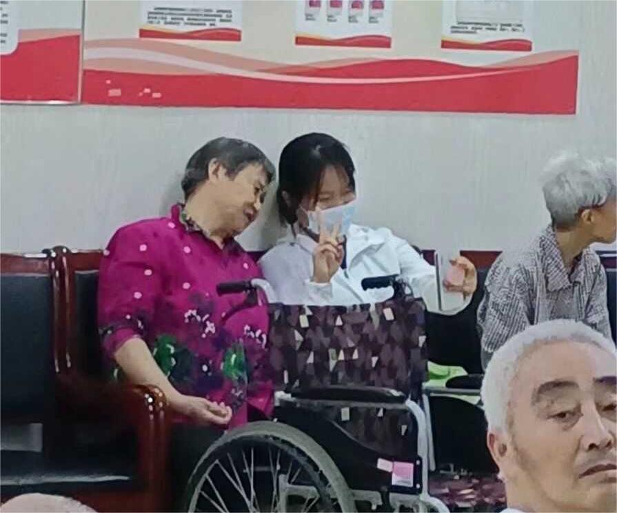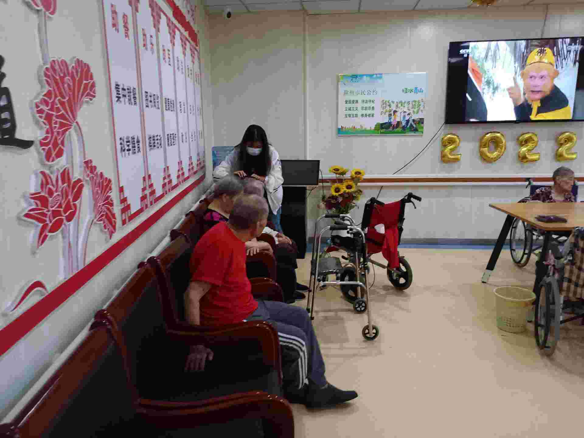 倾听交谈,送去温暖与老人们交谈是本次志愿活动最重要的,也是最必要的。通过倾听,可以了解到老人的情况,无形中增强队员们尊重老人的意识。通过交谈,可以让老人们感受到志愿者们的关怀,志愿者们可以给老人们宣传绿色环保、疫情防控的知识。队员们谨记在活动前了解到的注意事项,向老人说明身份与目的,在此过程中不主动问及老人的家里情况以及来养老院的原因,小心翼翼地观察和照顾老人的情绪。刚开始都是围绕很日常的话题交流,如“早上吃了什么”、“早上几点起床”、“对这里的环境和人满不满意”等等。倾听老人述说着他们的过往,感叹时间的无情,队员们总是一个劲儿地找话题,只希望用自己的努力不让现场变得尴尬,尽力带给老人温暖。这一次活动让队员们了解到了他们年轻时候的生活,其中有一位老人非常愿意和队员们分享她的过往,在与队员们分享的时候,她的脸上洋溢着幸福的笑容,这种幸福感非常真实,队员们都感叹她拥有很幸福、快乐的生活。当然,并不是所有老人都那么健谈,有的老人不愿意与其他人有太多的接触,队员们了解到有的老人害怕自己说错话得罪人而只愿意待在自己的房间里,不愿意到大厅活动。队员们了解到原因后,也没有过多的劝解,只是静静地倾听,安静地陪伴。