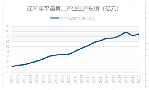 实践团收集近20年平邑县第二产业生产总值(亿元),并利用Excel进行统计分析,利用折线图的方式,清晰明了的表现出平邑第二产业的稳步发展。证明平邑在第二产业振兴方面成效显著。