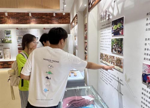 实践团在第一书记孙德忠协助下首先进行系列展馆参观,学习温水镇的总体布局与规划,了解温水镇非物质文化遗产、槐文化精神等文化资源,学习了文化振兴在乡村振兴中的巨大作用。在实践过程中实践团成员了解到:“槐文化”丰富了乡村底蕴,形成了此心安处是吾乡的“槐文化”浓厚氛围;“槐支部”将传统槐文化中的忠诚、担当、奉献等具有时代意义的精神融入基层党组织建设,完善了村庄组织架构,激发了群众改变村庄面貌的热情;“槐魂人”夯实了当地的产业发展,探索了村庄发展新路径,带动了村民增收致富。