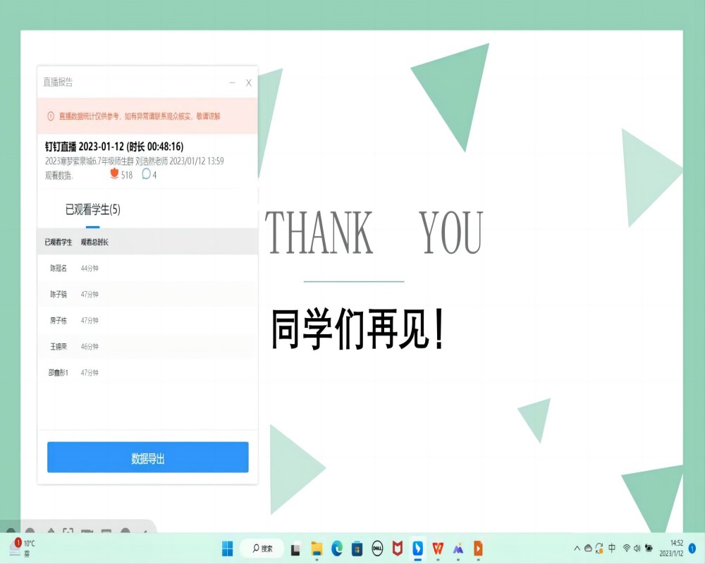 一上课,我就首先让同学们回答自己的年级,掌握大致的年级分布情况,以便在课堂正式开始后兼顾六年级的新课学习与七年级的旧课复习拓展节奏。同学们热情积极的回应给自己打了一针“强心剂”,在一条条聊天互动的消息中,首次讲课的紧张不安都被孩子们的活泼吹散。