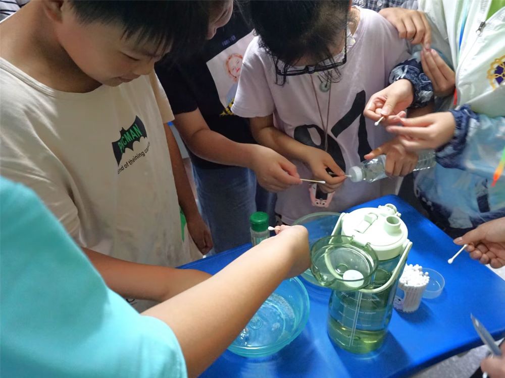 在生动有趣的科普课堂上,志愿者向孩子们普及微生物的知识。为了让他们更深刻地理解勤洗手、保持清洁和防范病菌的重要性,志愿者还带领孩子们进行了一项名为“胆小的胡椒粉”的实验。在实验中,孩子们亲眼观察到自己把手指浸入胡椒粉水后,胡椒粉会“逃离”它们的手指,这形象生动地展示了病菌的传播和清洁的重要性。