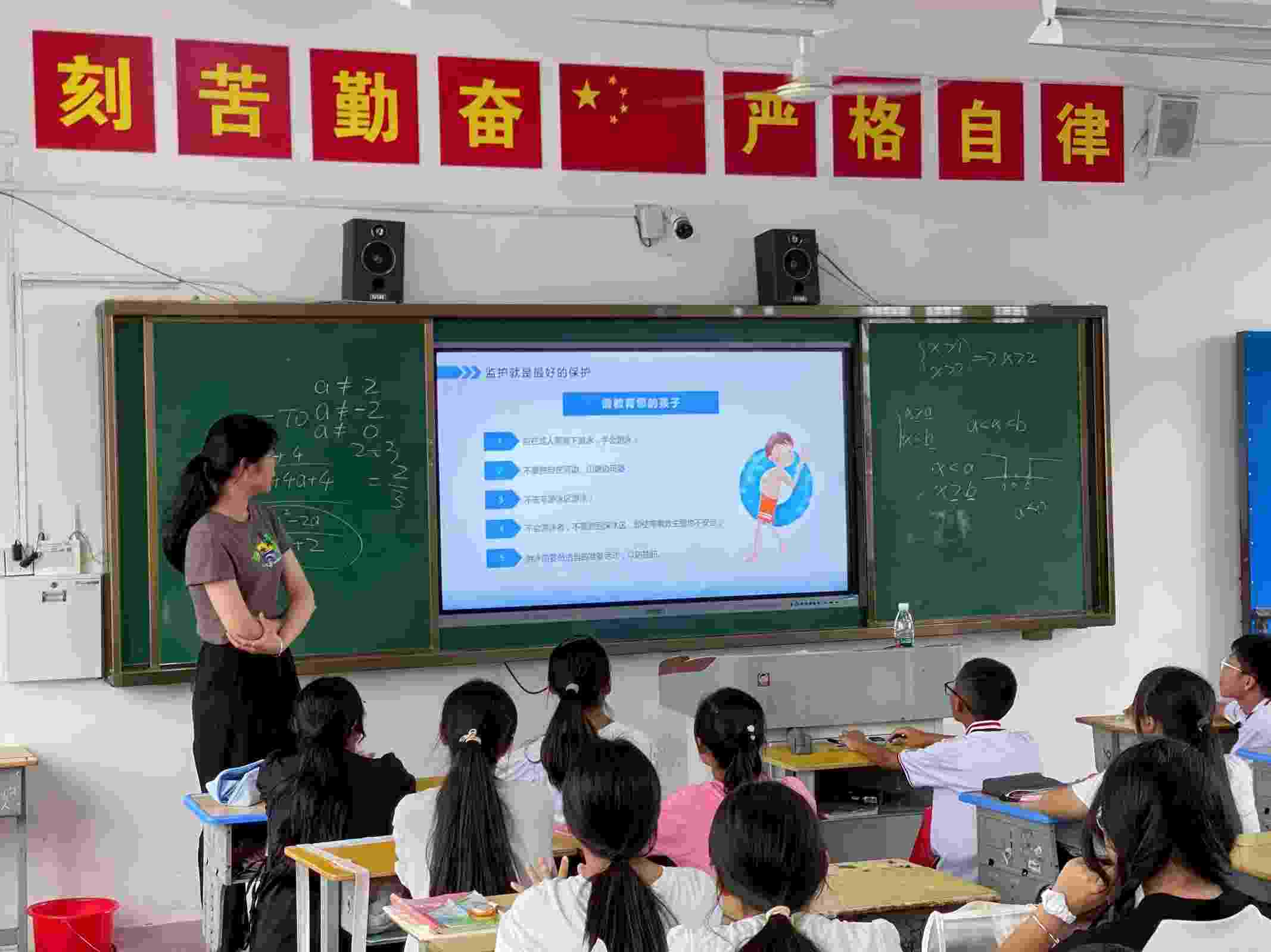 课堂伊始,安全教育的志愿者对安全教育的重要性进行了强调,同时对安全教育中的防溺水和防用火的安全知识进行了详细的讲解,在防溺水安全教育中,余乐萱介绍了陌生水域不能游泳、若有人在游泳时遇到危险应当如何做等一系列问题。在防用火安全教育中,余乐萱介绍了消防知识、火灾产生的原因和遇到火灾该如何做等一系列问题。在志愿者的详细讲解和与同学们的互动中安全教育课堂缓缓的落下帷幕。