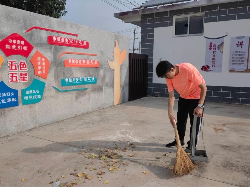 图为实践团成员记忆打扫村委会垃圾的图片此次活动“芒果行动”实践团每位成员有良好的分工合作,帮助村委会把庭院垃圾清理干净。实践团成员清扫垃圾,将垃圾堆积,集中统一清除。实践团成员认真检查公共区域的服务设施有无损坏,共同维护公共区域环境。打扫卫生增加实践团队员对劳动的重视,进一步加深保护环境卫生的意识,注意保持乡村环境卫生整洁。
