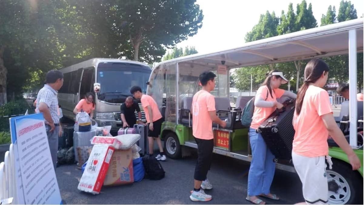 图为后勤组安排车辆出发前往洼子村