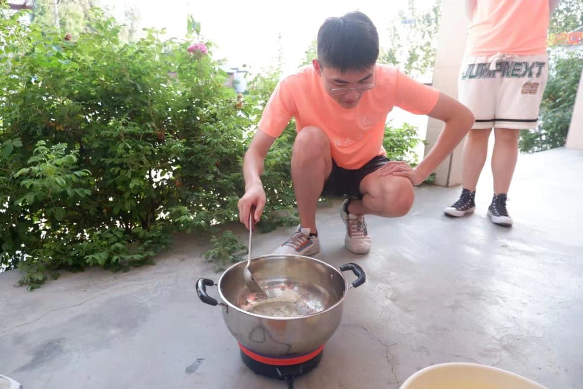 图为后勤组成员正在烹饪食物