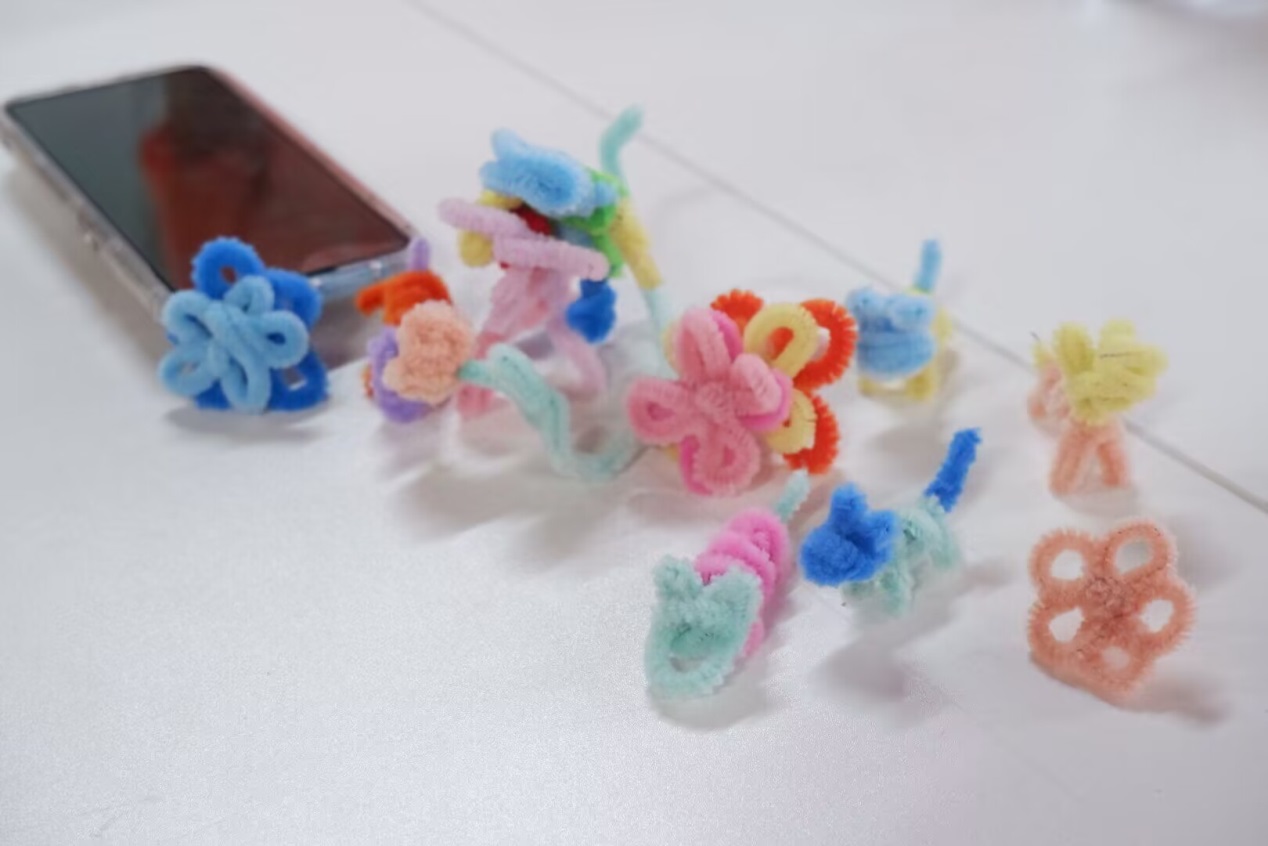 有趣的课堂不如亲自动手,实践团成员认为动手可以培养洼子村学生的创造力。对于扭扭棒,学生可以根据自己的想法变成不同种类,不同样式的手工制作,更能培养学生发散性思维,提高学生审美能力和感知能力。