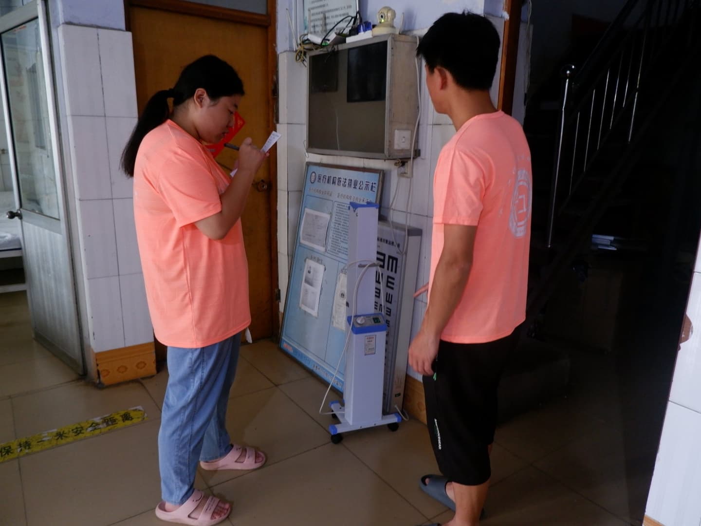 图为实践团成员了解卫生室医疗设备优化医疗资源配置,夯实百姓健康的“堡垒墙”。通过提高当地的医疗卫生水平,促进人民健康水平显著提升。托起人民群众的“健康梦”,培养合格的健康“守门人”, 夯实百姓健康的“堡垒墙”,定能更好满足人民群众对美好生活的向往,促进乡村振兴发展。