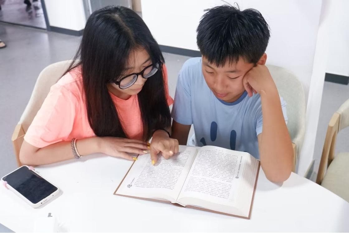 读一本好书,品百味人生。绿树浓荫夏日长,正是少年读书时。为提升洼子村同学们阅读能力、提高语文素养,从书籍中获取知识、扩宽视野。7月12日,山东理工大学“向阳花开”实践团在山东省泰安市新泰市汶南镇洼子村民安驿站书房组织同学们开展图书阅读主题活动。