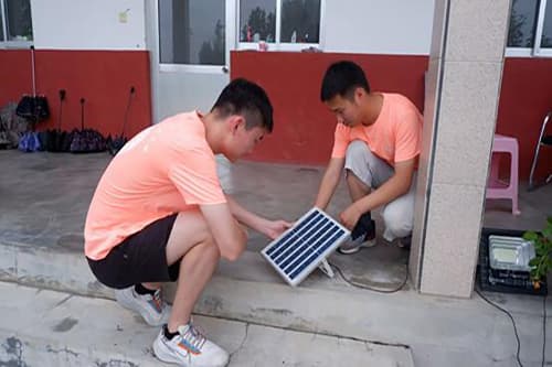 图为实践团成员观察光伏发电板