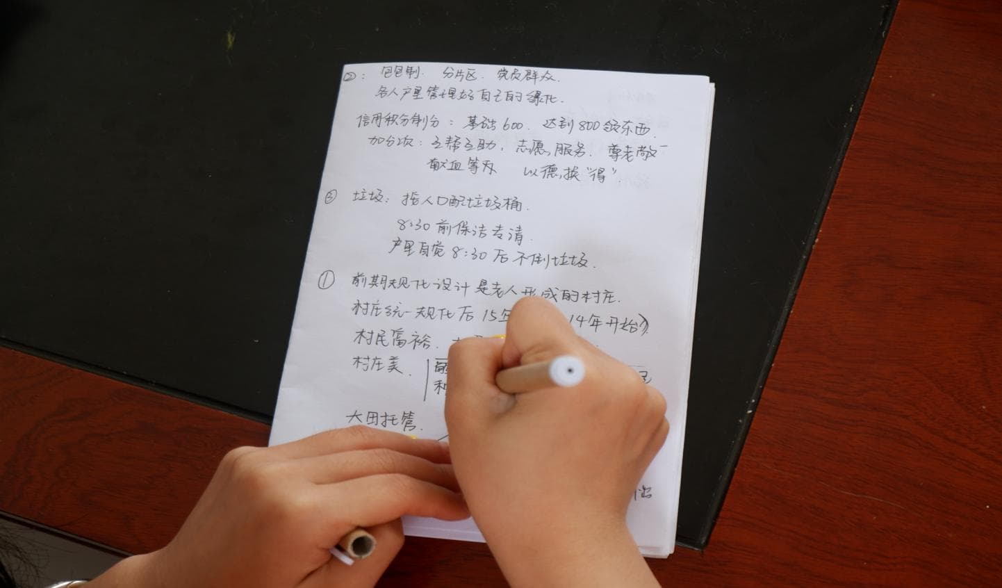图为实践团成员采访记录洼子村相关情况