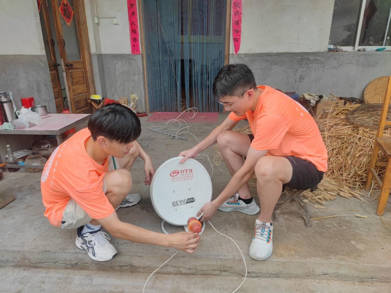 图为实践团成员修理电视天线