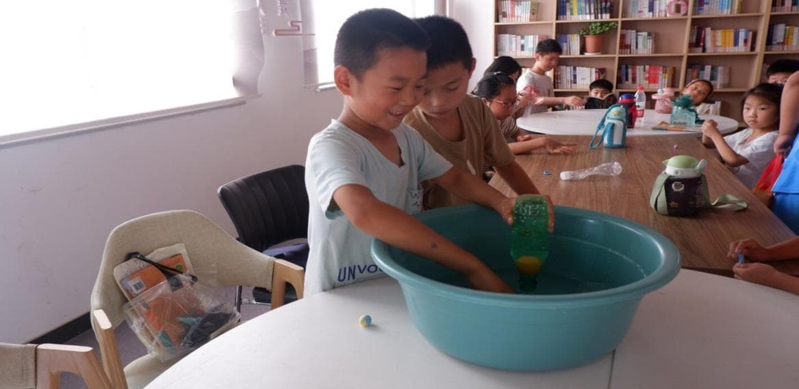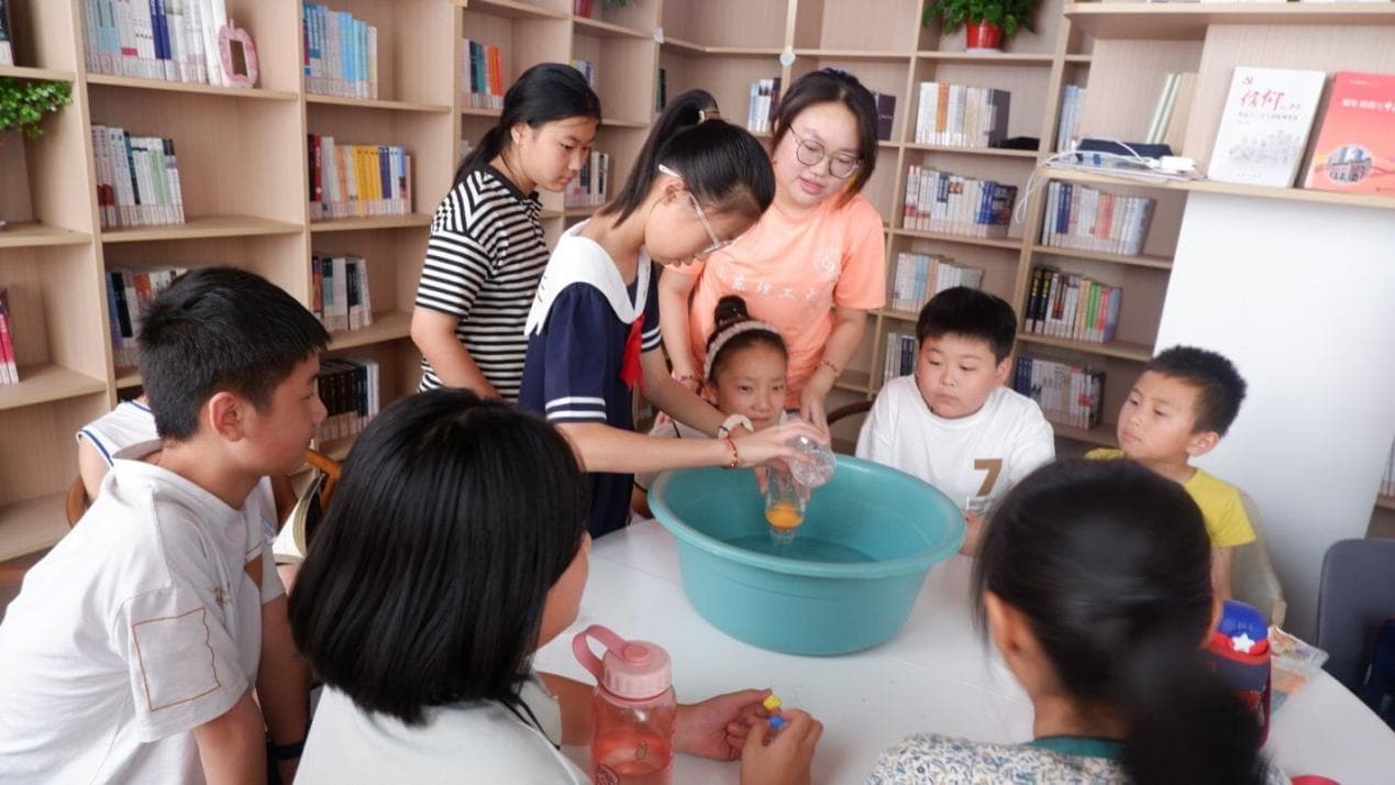 实践团成员利用课余时间,组织洼子村学生们开展浮力科学小实验。利用盆子、水瓶及乒乓球等日常用品,带领学生们通过简单的科学小实验,理解书中深奥的物理知识,通过观察和分析实验现象,了解实验内容,让学生们更好地理解所学物理知识。