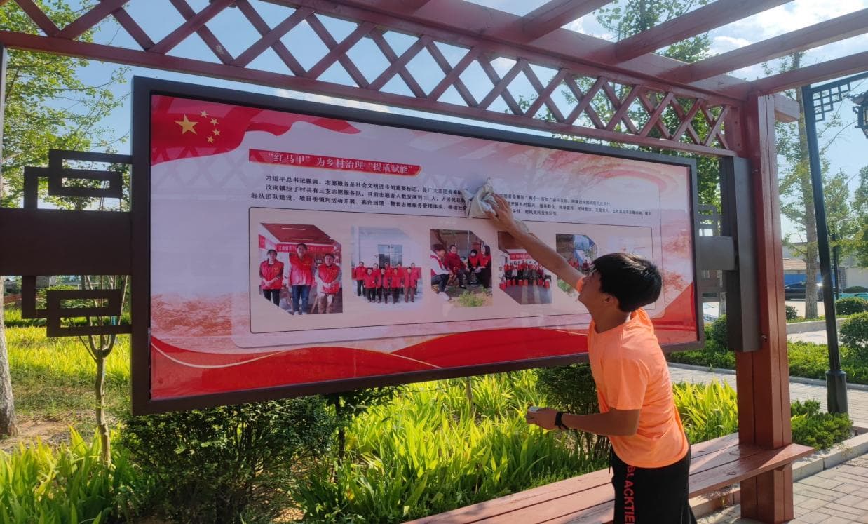 实践团成员积极举办志愿服务活动,主动为洼子村清扫村庄街道,擦拭村内宣传栏,更好地改善洼子村村民的公共环境,提高村庄卫生安全水平,提升洼子村村容村貌,宣传保护卫生重要性,提高村民清洁卫生文明意识,营造良好健康生活环境,助力乡村振兴发展。
