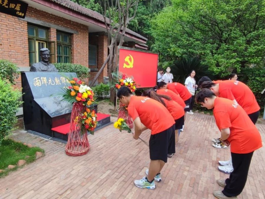 图为队员们为两弹一星元勋邓稼先先生献花并致敬缅怀。通讯员 刘振鑫 摄