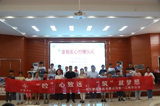 为振兴乡村教育,全面助力农村儿童实现求学梦,7月21日,中交建筑集团第一分公司向八义集镇中心小学暑期爱心捐赠仪式在八义集镇中心小学举行。中交建筑集团第一分公司人力资源部(党委组织部)部门经理、工会委员高迎立,高级业务经理刘晓娜和项目工程部长吴双,中国矿业大学力土学院团委书记李亮,邳州市少先队员负责人杜万云,邳州市八义集镇中心小学校长郭广超出席仪式。仪式由中国矿业大学筑梦支教团“向远筑梦”分队队长韩明慧主持。