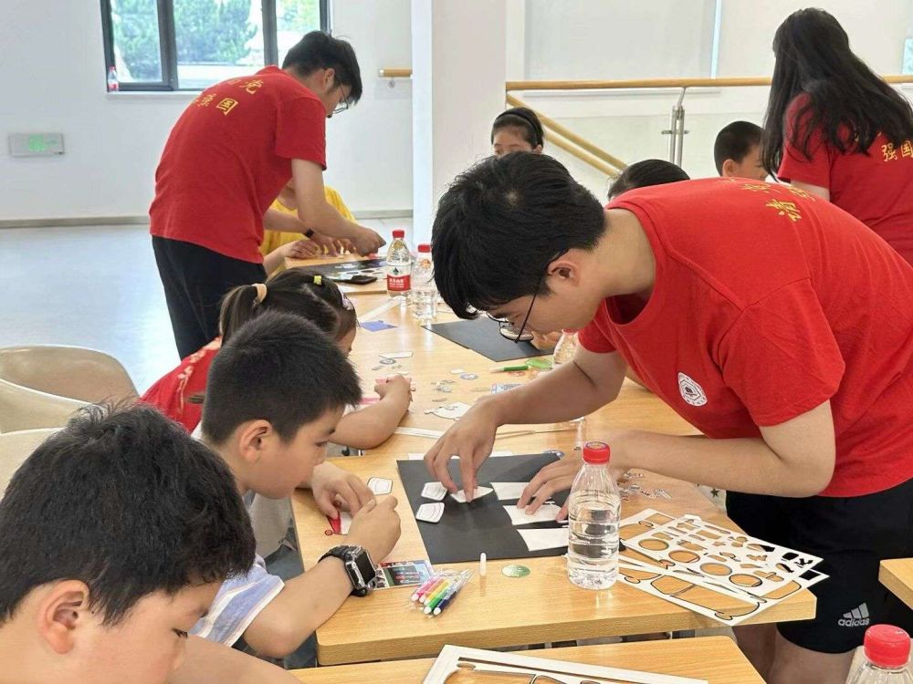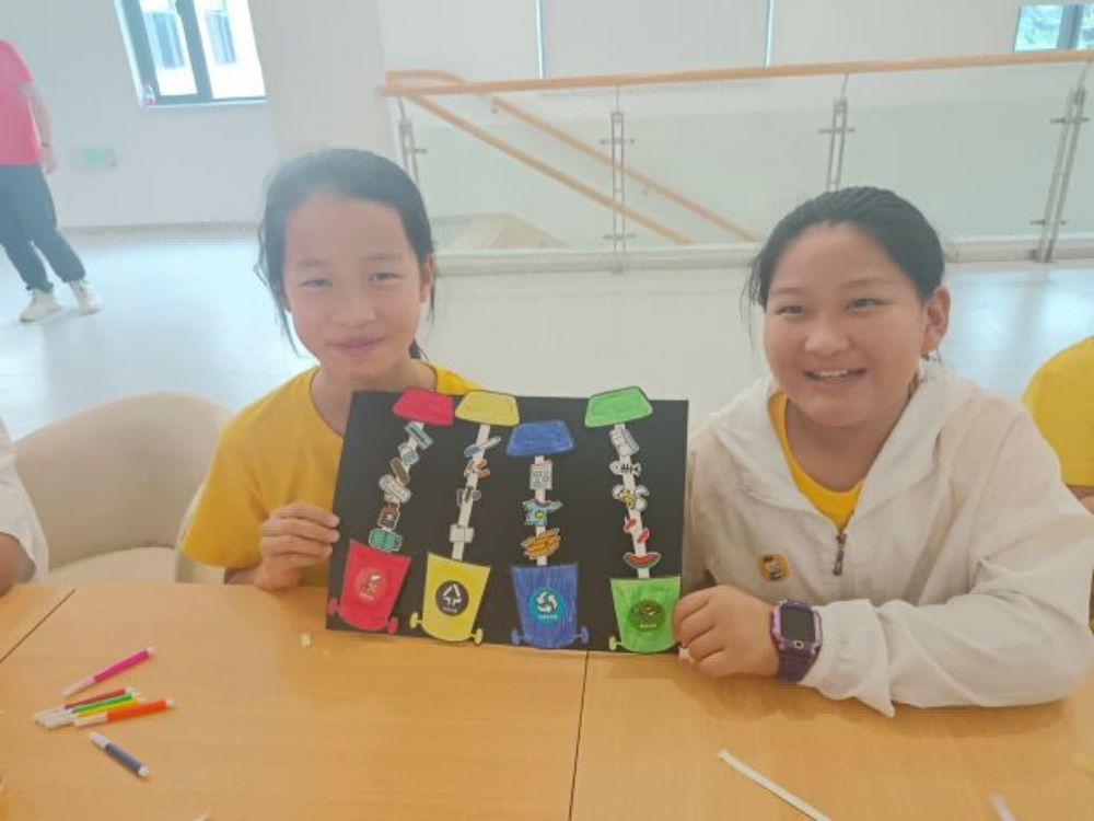 图为实践队队员们与小朋友们一起制作垃圾分类手工