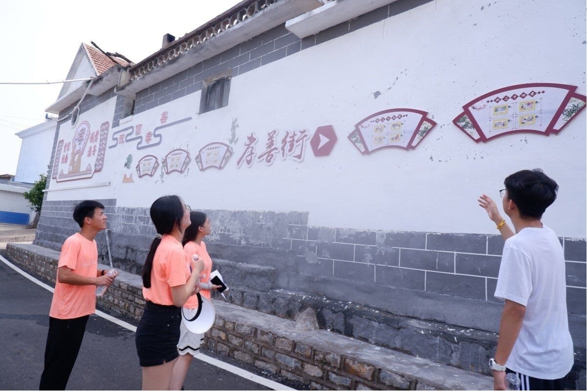 在当地青年梁俊易带领下,实践团成员参观洼子村“诚孝”两条街,切身感受洼子村“诚”、“孝”、“善”等文化氛围。
