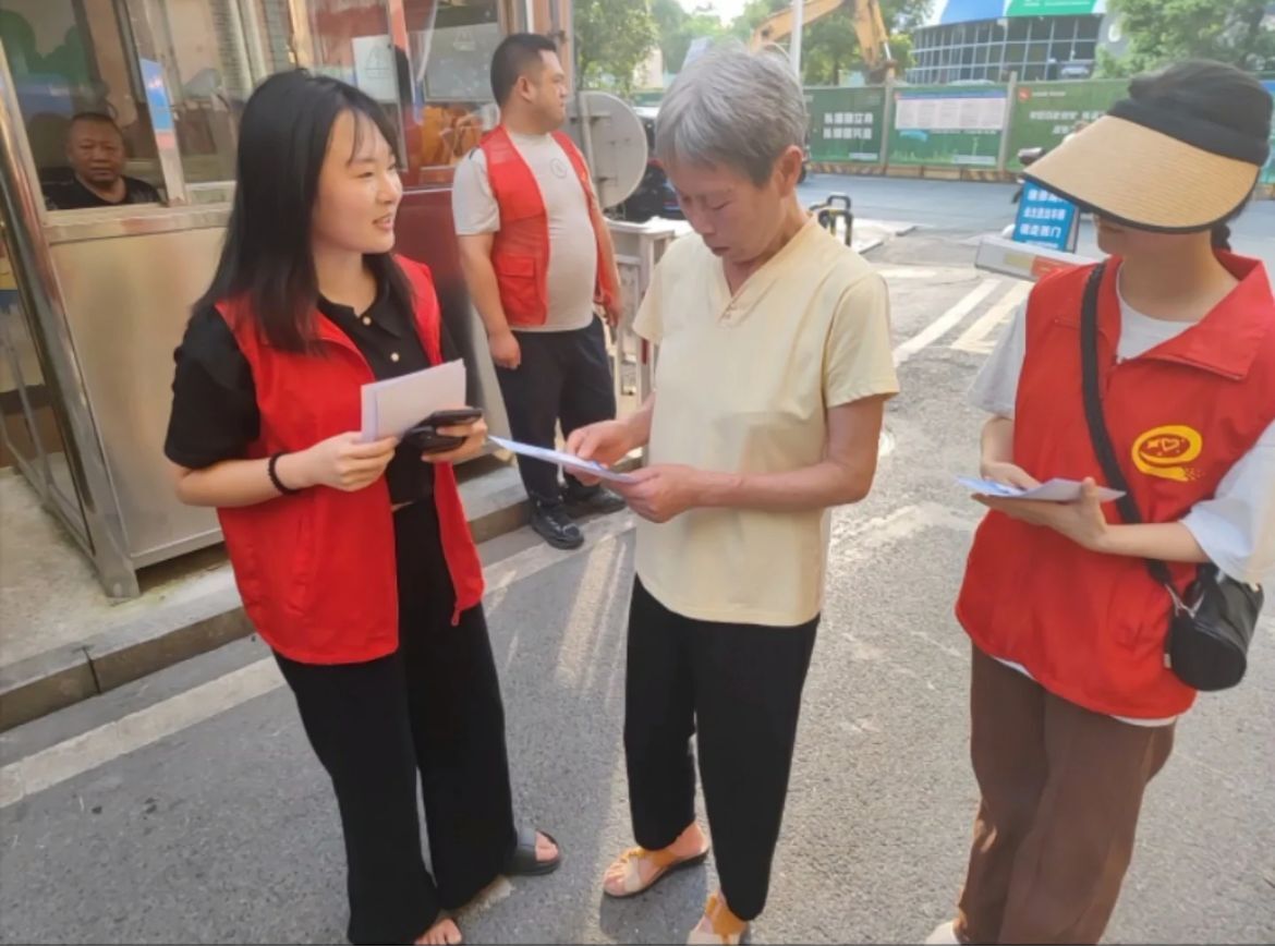 随后,实践队成员换上志愿服走入附近社区为进一步加大宣传。