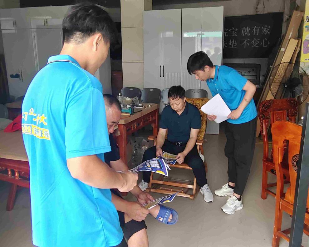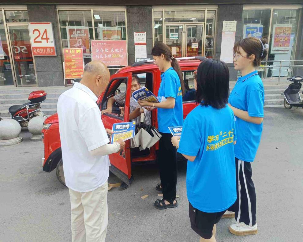 团队成员在白山镇社区负责人的带领下,前往白山镇社区向街道两旁的商家、行人询问是否了解电信诈骗,是否遭遇过电信诈骗,随后向居民们宣传防电信诈骗知识。