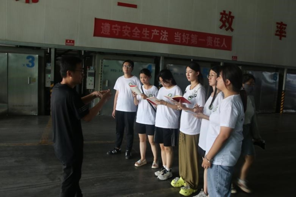 产业振兴是全面推进乡村振兴的“重头戏”,因产业是发展之基、财税之源、富民之本,为更好了解产业振兴的需要,社会实践团成员跟随着工作人员的带领下参观了位于德州天衢新区的山东雪榕生物科技有限公司,该公司通过“绿色循环+工厂化生产”的模式,使得日产食用菌480吨,让菌类的鲜美“飘”向全国。社会实践团成员在工作人员的带领下,参观了如何生产菌落以及如何实现绿色循环的发展模式。该公司采用“玉米芯、麸皮等农业下脚料和废弃物——食用菌产品——菌渣——燃料产生蒸汽提供热能或回填作为有机肥料”的循环农业生产方式,做到了变废为宝和对资源的再生循环利用。在获得培养基后,进行打孔、高温灭菌、低温处理后进行接种、繁殖生长菌菇等步骤,在进行高压灭菌的过程中,为了更加科学的处理培养基,在高压灭菌的过程中,做到抽真空后在123摄氏度下加热80分钟后,在继续保温210分钟以达到抽离真空和消除杂菌,利于菌类的生长。在低温无菌的培养室中培养21天后获得幼苗,进行去除老化的菌落表面,再进行培养28天后由自动化的运输路线输送到包装间,在14摄氏度的环境下,工作人员需要切根后,称量后包装成箱,运输到各个地区。