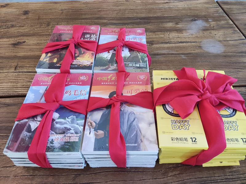 图为实践团捐赠的书籍和彩铅