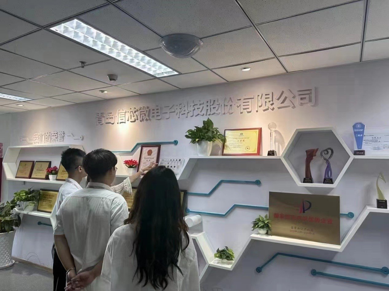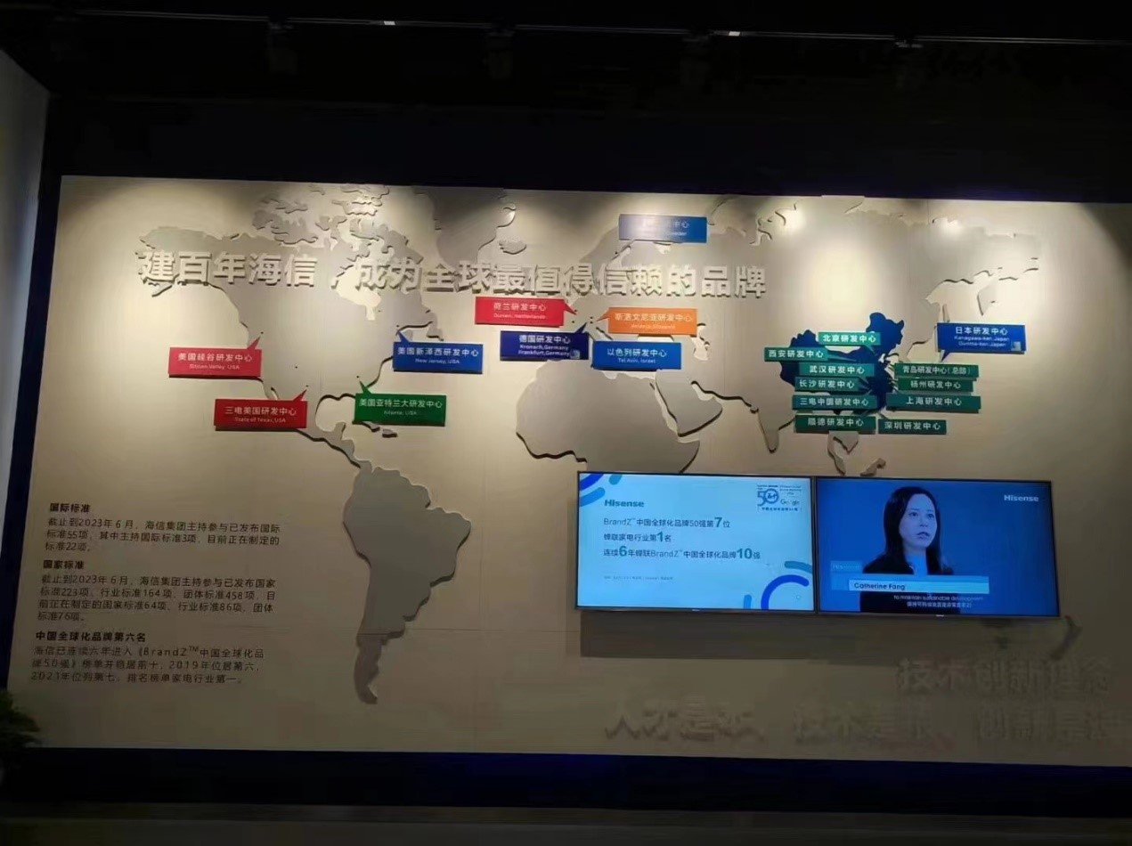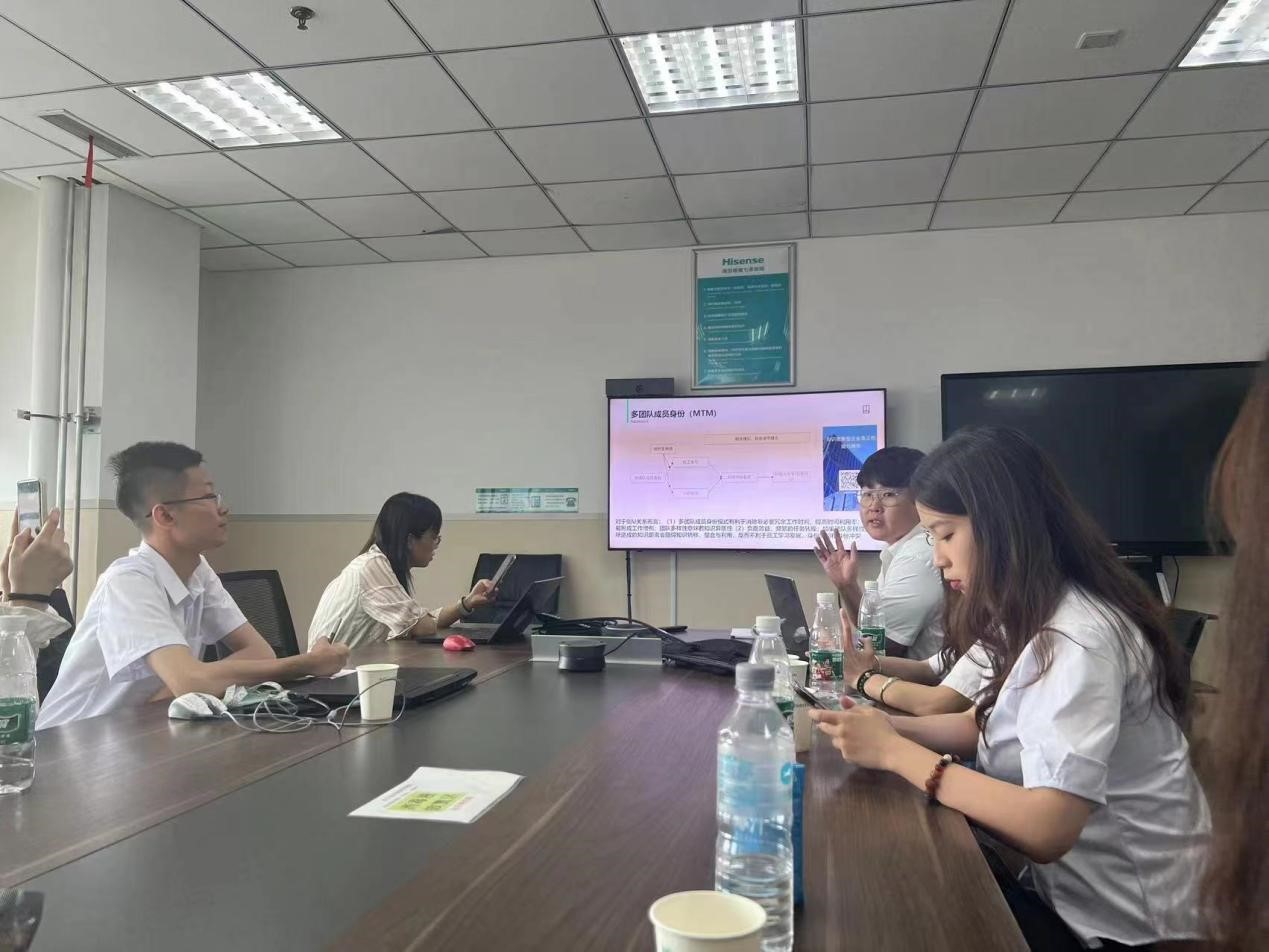 在青岛信芯微电子科技股份有限公司工作人员玛丽的带领下,实践团队来到海信新研发中心进行参观。在工作人员的细致讲解下,团队成员了解到信芯微电子科技股份有限公司现有智慧家庭、智慧社区、智慧城市三大板块下的具体应用和创新产品。参观学习之后,团队成员受益匪浅,并表达了希望能够利用自己所学参与到信芯微电子科技股份有限公司研发中心对外开放的研究项目中的愿望,同时研发中心也表示希望日后能与同学们有更多的合作与交流机会。
