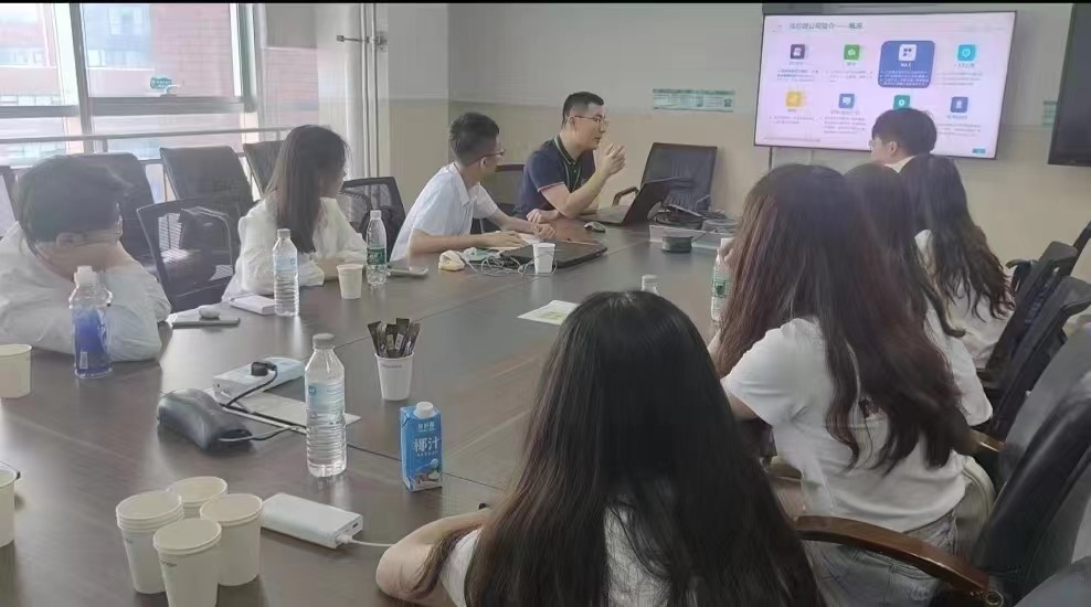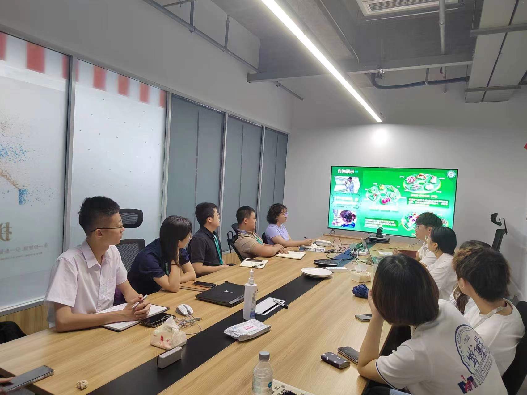 技术人员就智慧农业柜项目进行交流:参观完信芯微电子科技股份有限公司研发中心后,实践团队长张昊男向公司相关技术人员介绍水培蔬菜,智慧农业柜项目,重点阐述了该项目的诞生背景及应用场景。技术人员对此项目很感兴趣,并针对其中的算法、农作物生长数据库等相关内容展开详细讨论,并针对具体算法给团队成员提出宝贵建议,以期该项目能精益求精,尽善其美。此外,企业技术人员表达了与智慧农业柜项目合作的意愿,并于实践团队长张昊男交换联系方式,方便后续相关事宜。