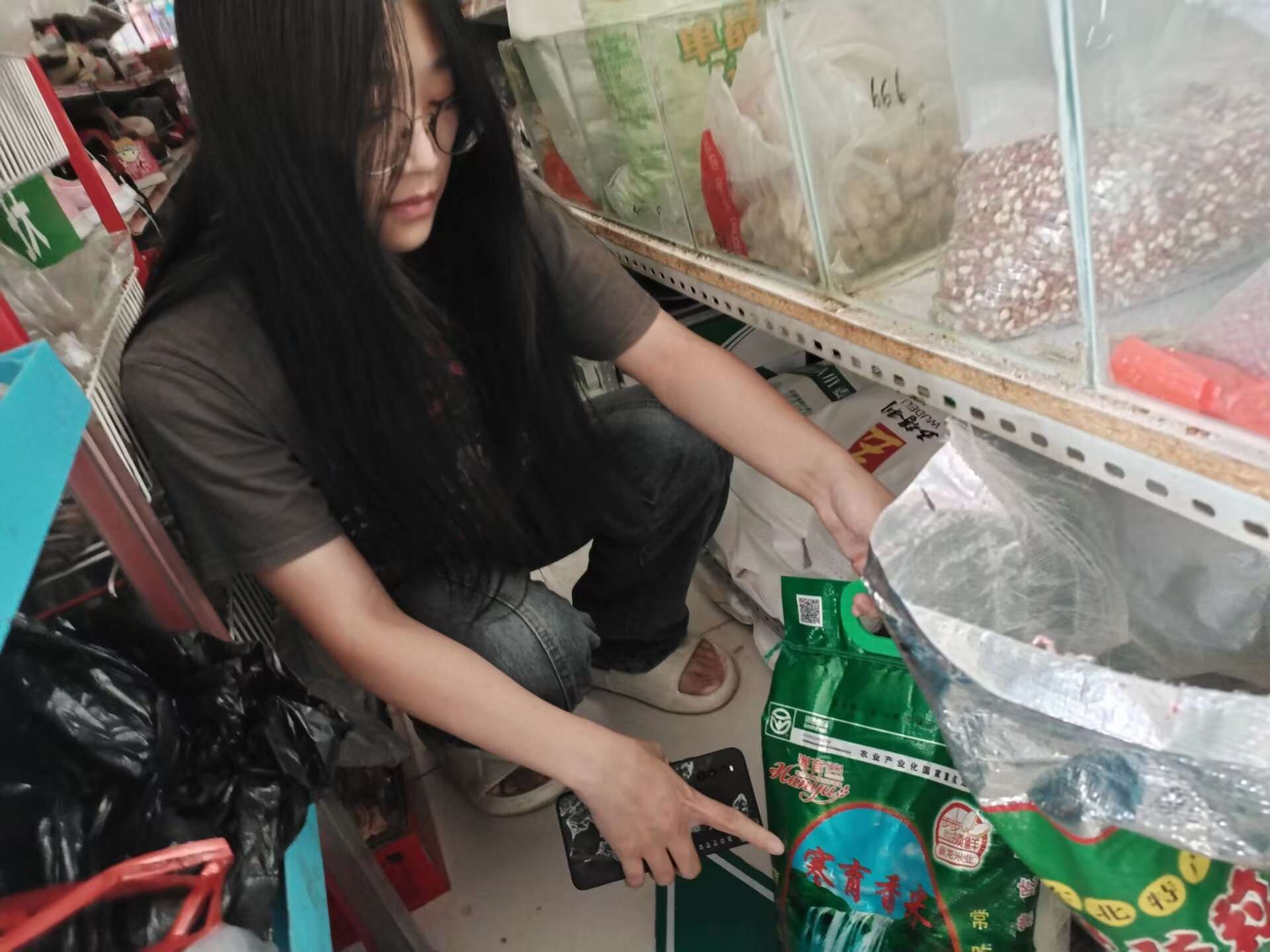 在队员与一家超市负责人的询问中,探究十年来人们购买方式和购买商品种类的变化。据她介绍,主食(米、面)价格没有发生太大变化、商品种类增多、超市也承担网购实体店功能。