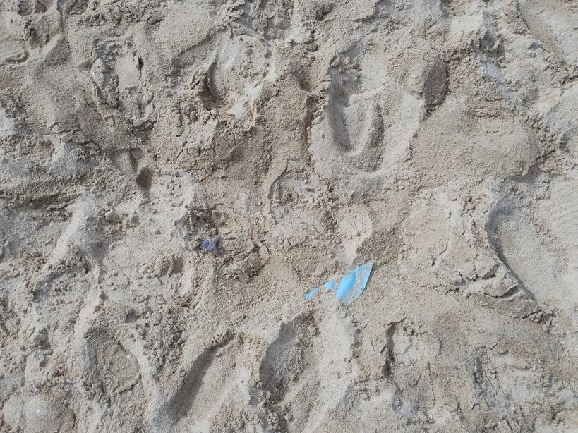 调研伊始,团队成员来到大梅沙海滩,即便是雨后以及工作日,但是海滩上的人数已经不少。通过调研发现主要垃圾为厨余垃圾,其他垃圾,可回收垃圾。其中又以其他垃圾与可回收垃圾占据大多数,可回收垃圾占比达一半以上,且大部分为塑料制品。其他垃圾占比百分之四十四,主要由纸巾、烟头、口罩构成。其中纸巾有大小不等23处,数量最多。烟头占比为百分之三十九,分布大致呈现与颜色此处沙子的颜色相关,离海较近处沙子颜色偏深,发现的烟头大多黄色,较远处则白色较多,此外均零星分布有颜色偏黑的烟头。猜测主要是由于颜色与沙子难以辨别导致。口罩数量较少,均在离海较近处发现。