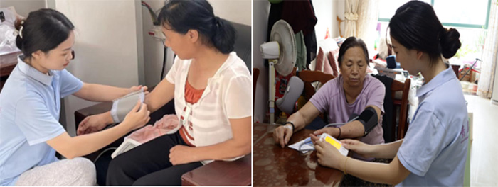 (图为团队成员入户义诊中为老人测量血压)