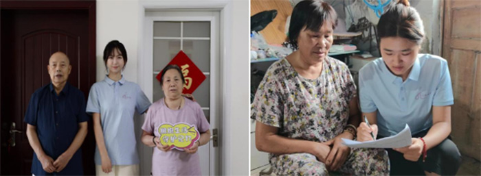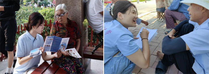 (图为团队成员深入乡村、社区开展关于AD8问卷调查及认知症科普宣传手册讲解)