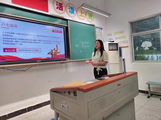 图为苏拉拉为同学们讲解党史教育课,将共产党的红色精神传播给同学们。通讯员 代宇晗 摄