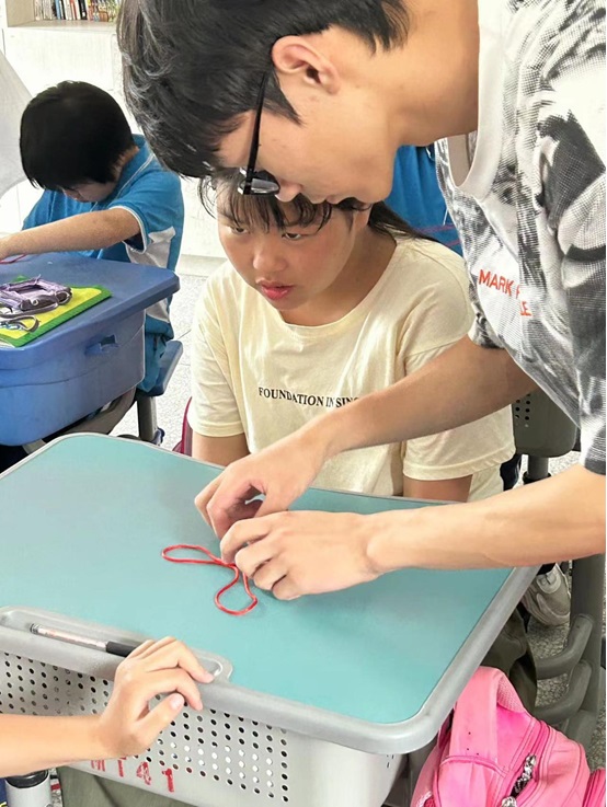 图为代宇晗教同学们做手工,培养同学们的动手能力和耐心。通讯员 苏拉拉 摄