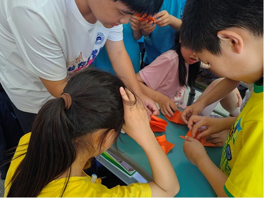 此图为队员曹晓阳教小朋友做手工(通讯员 陈佳敏 摄)
